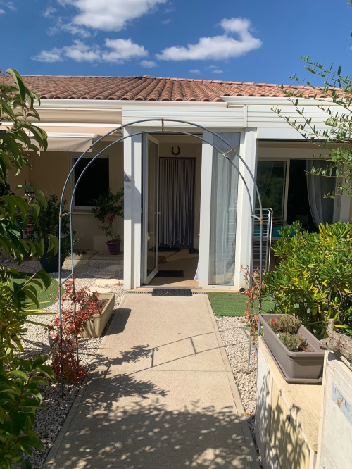 A vendre une ravissante maison individuelle en très bon état d'entretien de plain pied d'environ 80m2 sur une parcelle arborée et piscinable de 350m2 située à Vias dans un quartier pavillonaire à proximité de toutes commodités et 2.5kms des plages.